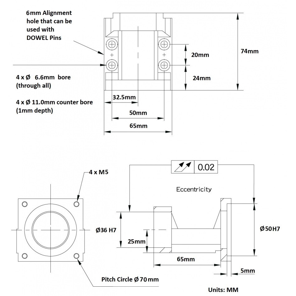 - 4 x M5x20 DIN912 bolts included for mounting the servomotor