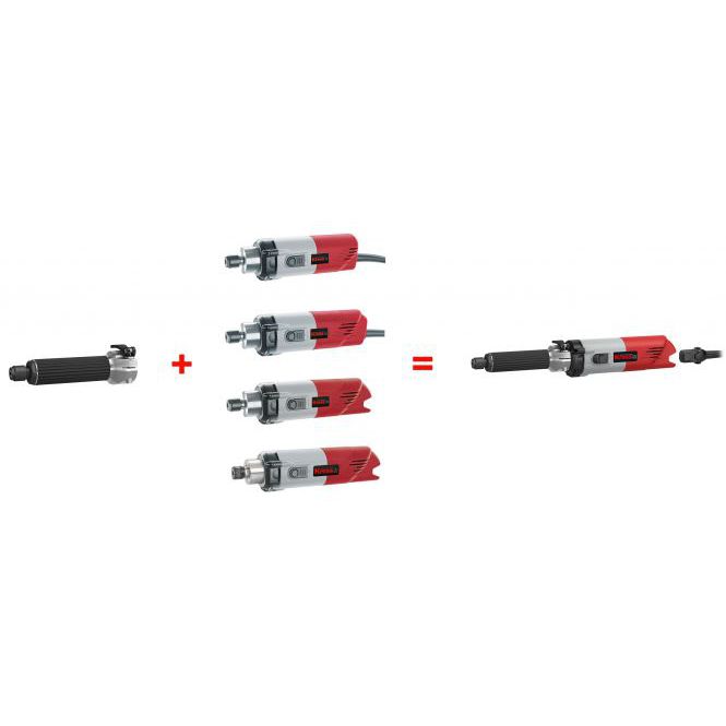 The AMB Straight grinder attachment GSV, can be used to turn an AMB (Kress) milling motor into a hand grinder. It is compatible with the normal AMB (Kress) collet system. It is not compatible with the 1050-P that used the ER system.