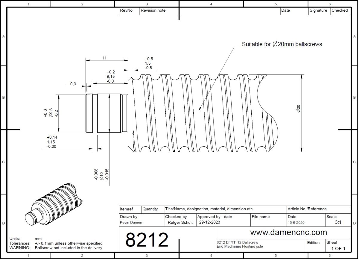 | 8212-3 BF FF 12 Ballscrew End Machining Floating side 2D-Dimensions |