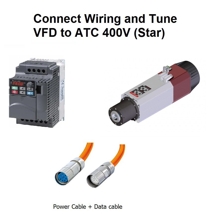 Connecting a TeknoMotor ATC71 to a VFD and setting the parameters is not an easy task even if you know what you are doing. The problem is, if you make a mistake setting the V/F curve within a few minutes you can damage the ATC TeknoMotor. The ATC is much more complex than a normal motor, it cannot be tested without pressurized air. For this reason we prefer to connect and tune the drive for the client, to prevent any problems. This product can only be sold along with TeknoMotor ATC + VFD + Cable Set + Pneumatic package