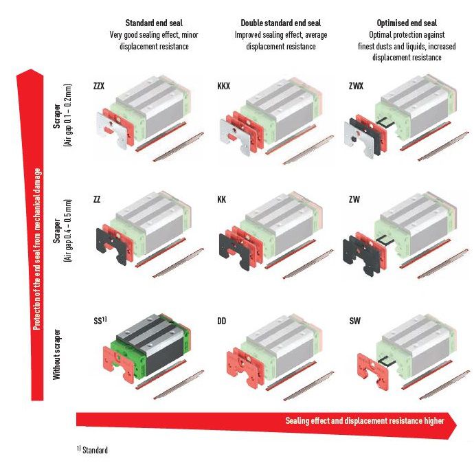 - The additional top seal prevents the ingress of dirt via the top of the rail