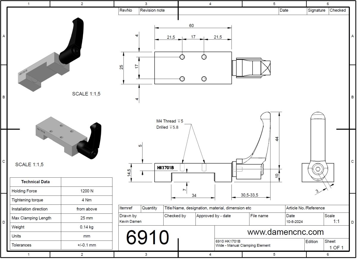 - HK manual clamping units are intended for STATIC holding only. Using them for dynamic braking is not recommended and could damage the linear rail.