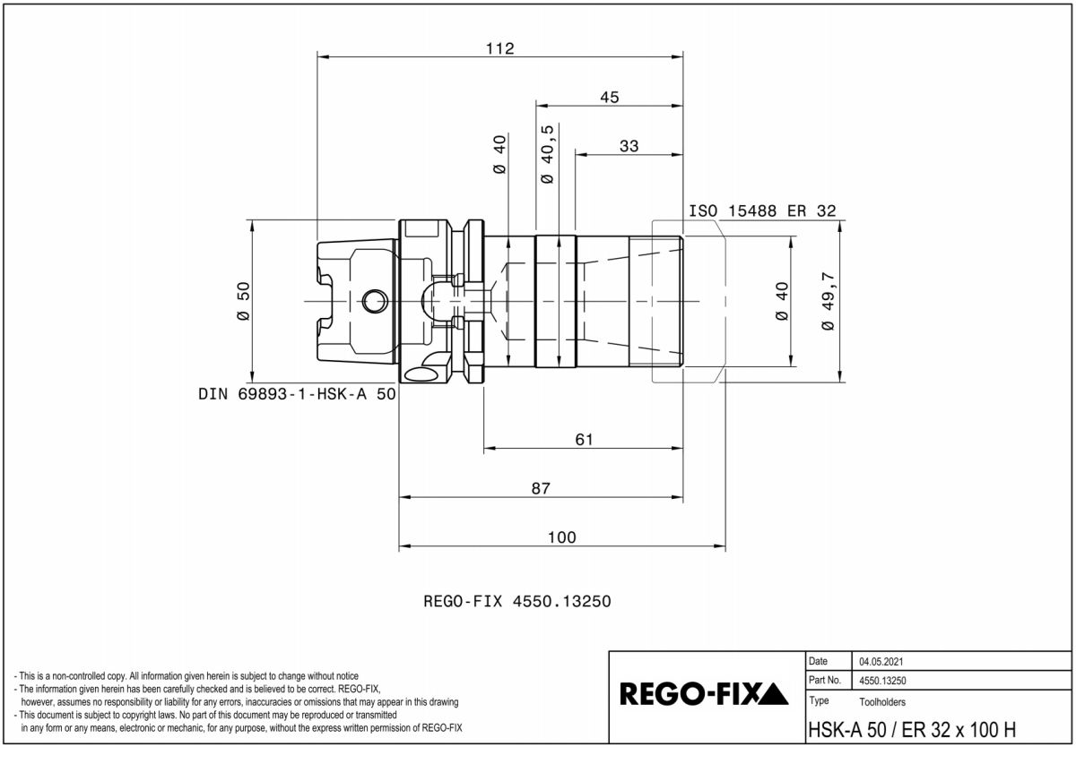 - Toolholder HSK-A50 (can also be used in TeknoMotor QTC with a HSK-C50 mounting system)