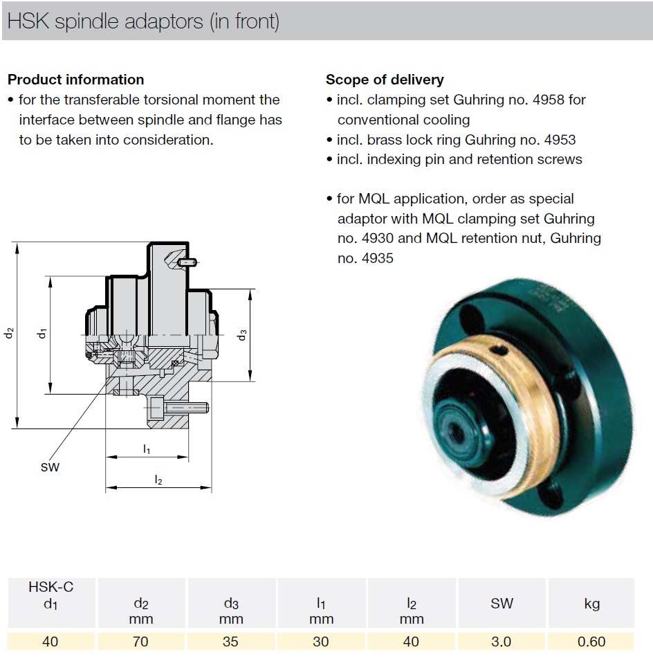 - HSK spindle adaptor (front mounted)