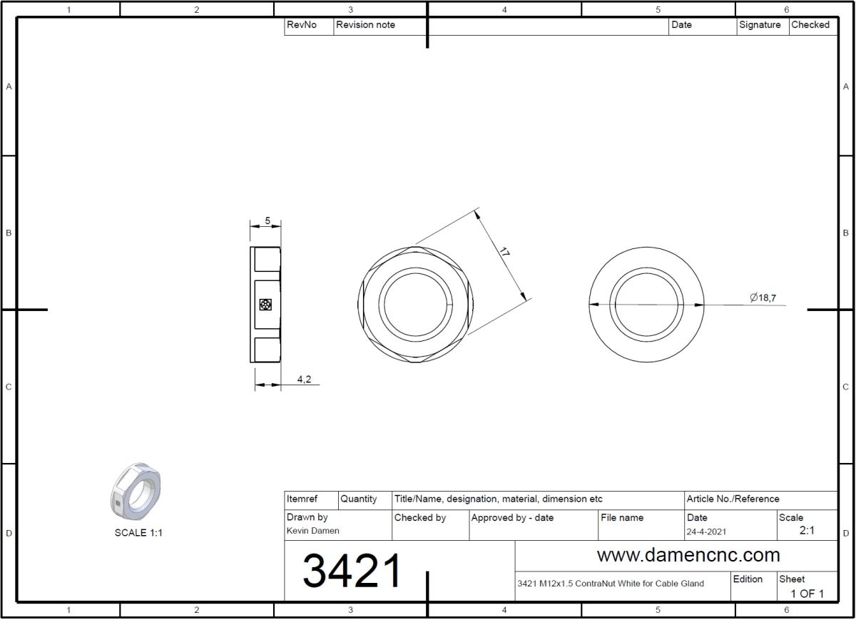 M12x1.5 ContraNut White for Cable Gland