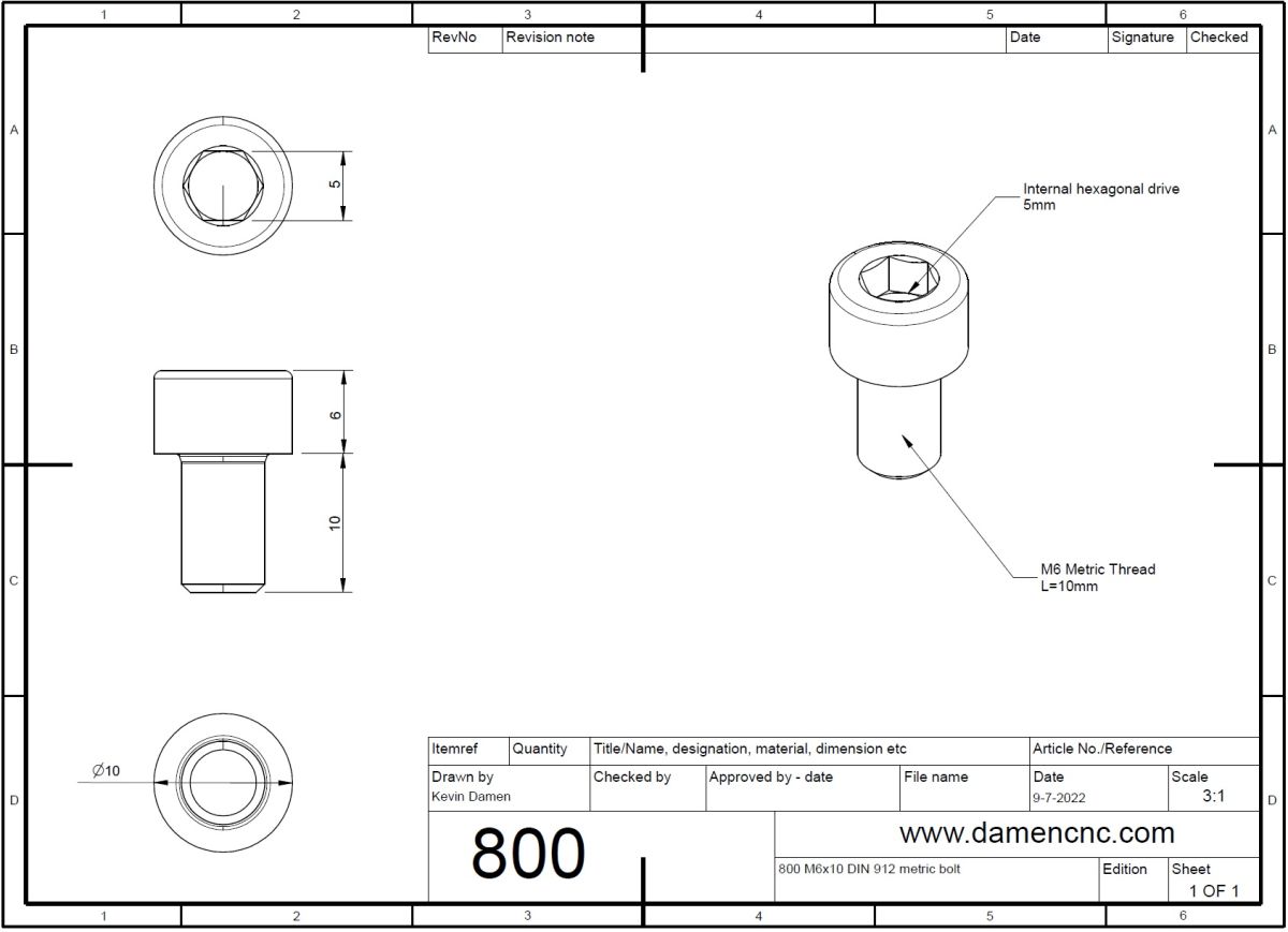 | 800-3 M6x10 DIN 912 metric bolt 2D Dimensions |