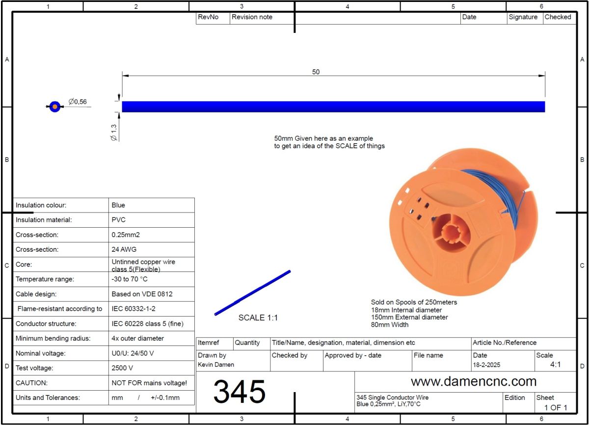 Single Conductor Wire Blue 0,25mm², LiY,70°C