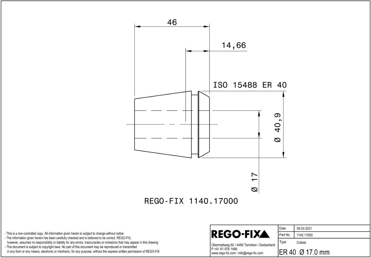 | 5835-3 Single ER 40 Collet 17.00mm Swiss Quality 2D Dimensions |