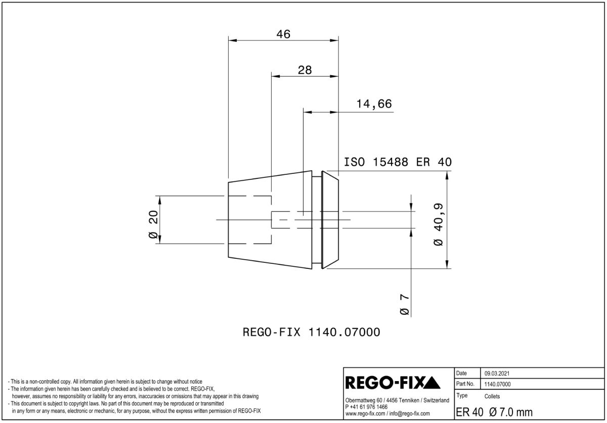 | 5825-3 Single ER 40 Collet 7.00mm Swiss Quality 2D Dimensions |