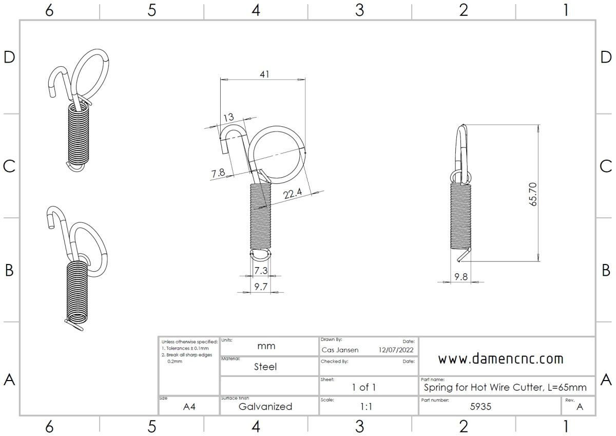 5935-1 Spring for Hot Wire Cutter, L=65mm STEP214 |