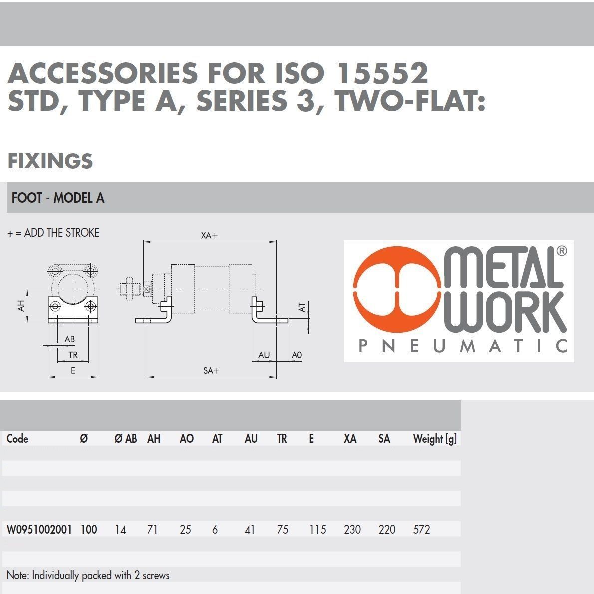 Foot Model A hinge for MetalWork pneumatic cilinders ISO15552 Series with a 100mm bore.