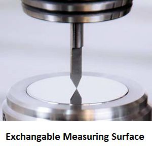 - Exchangable measuring surface ( plasma nitraded (standard) or carbide surface )