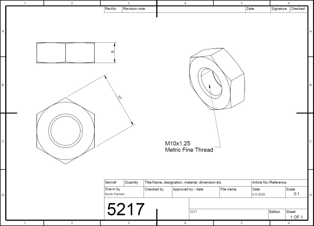 | 5217-2 Rod Nut M10x1.25 (0950322010) 2D Dimensions |