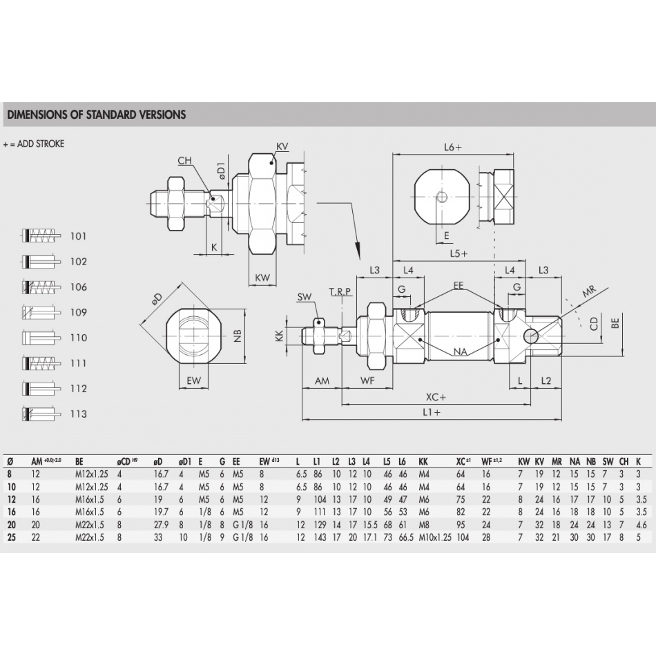113 025 0200 CP 25mmØ 200mm stroke ISO6432 STD Pneumatic Cilinder