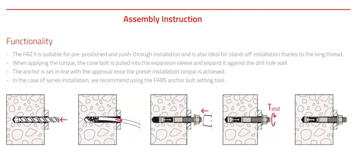 Het type wat we hier aanbieden is de M8 variant met een totaal lengte van 95mm. De minimale boordiepte die Fischer adviseert is 85mm. De dikte van het te bevestigen onderdeel(tfix) waar het anker voor gemaakt is, is 30mm. Het anker is te gebruiken tot een dikte(tfix) van 40mm, echter is dan de belasting die het anker kan hebben gereduceerd.
