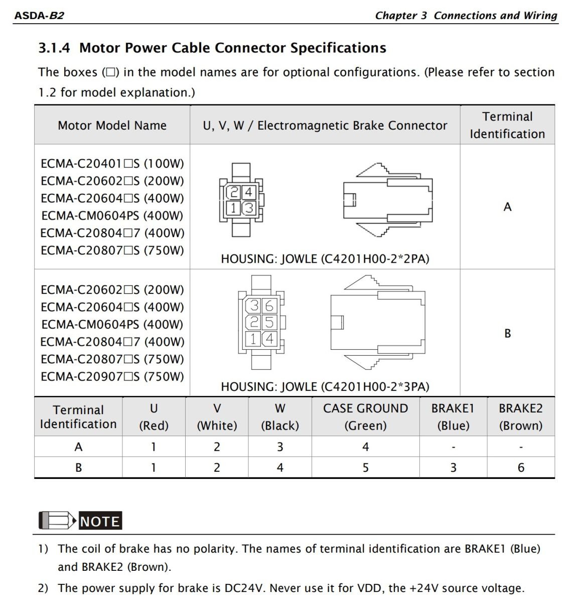 ASD-ABPW0103 Power+Brake Cable for ASD-A2 (3m)