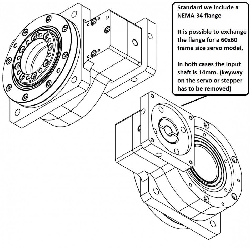 - OPTIONEEL: Flens voor 60x60mm Servo Motor (Delta of anderem et een 14mm as)