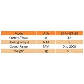 De ES-MH33480 is een 3 fase NEMA 34 8.0NM stappenmotor met geintegreerde 1,000-line incremental encoder. Wanneer aangedreven door de ES2-3DA2306 drive voor een 220/230 input spanning, is de loop tussen de motor en de drive volledige gesloten. Als gevolg hiervan zult u geen stappen verliezen. Omdat er geen koppel resolutie nodig is, zoals met een open loop stappen systeem, is de high-speed performance tot 30% beter dan bij een open loop stappensysteem. Deze systemen zijn ook uitermate geschikt om borstelloze servo systemen te vervangen, wat zorgt voor hoge start en lage snelheid koppel.