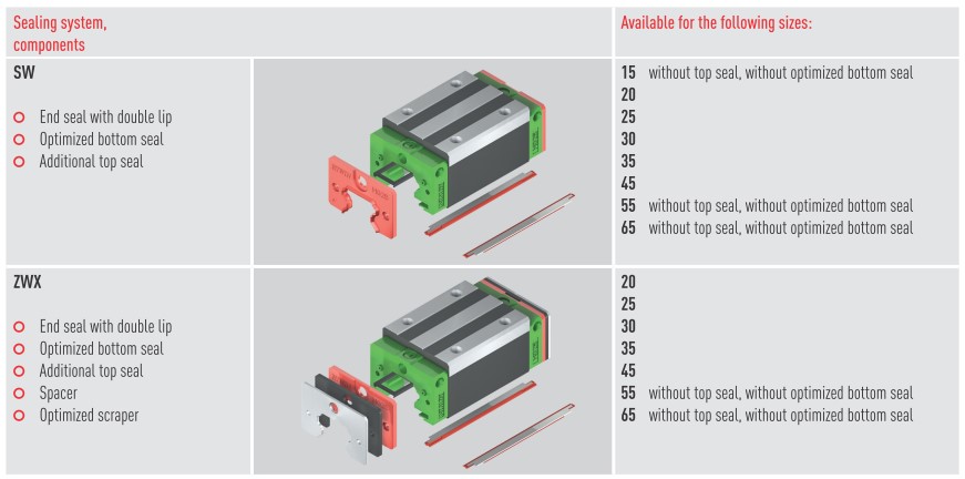 - Bottom seal voorkomt indringing van stof via de flanken van de rail