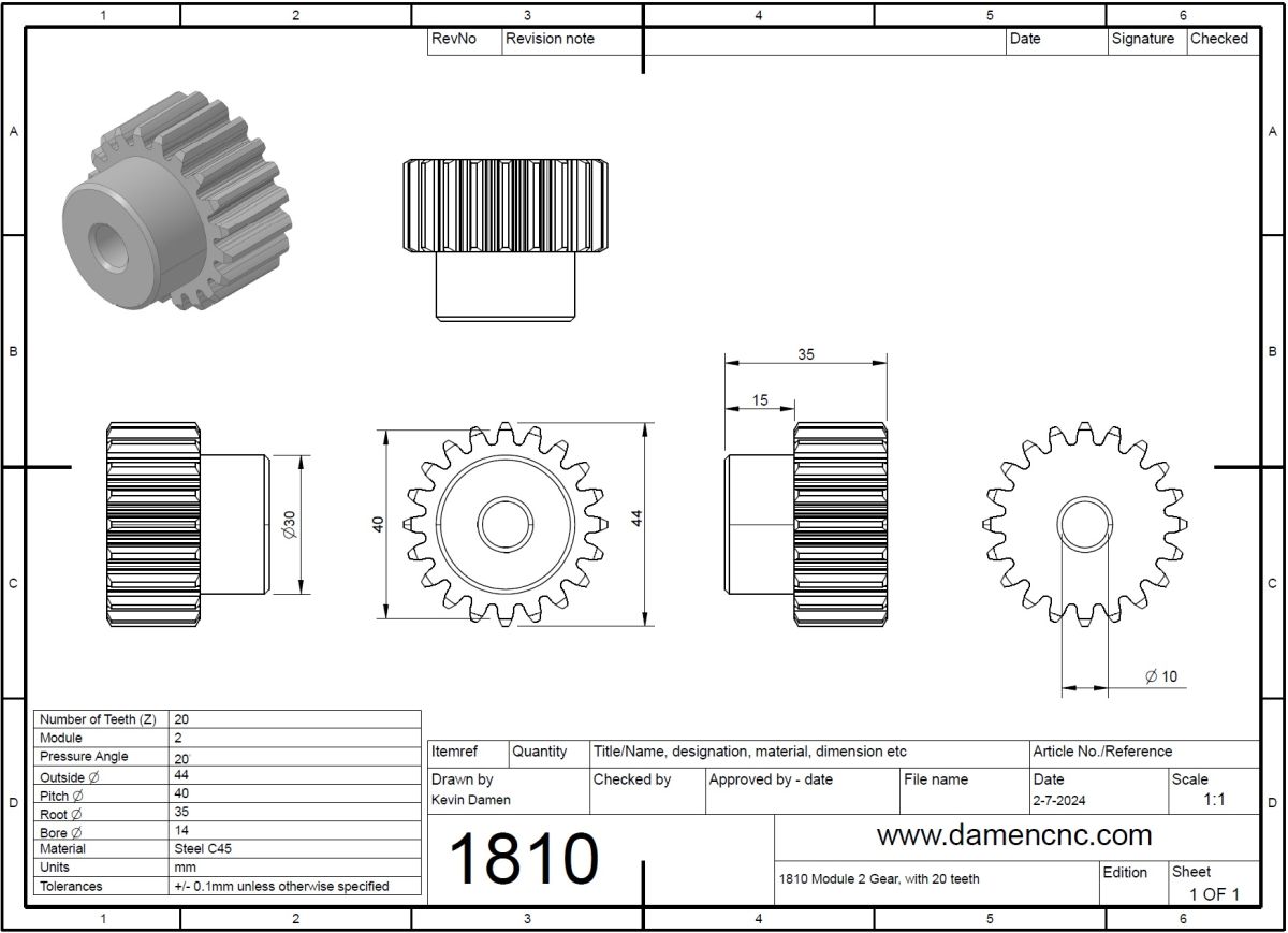 1810-1 Module 2 Pinion, with 20 teeth STEP214 |