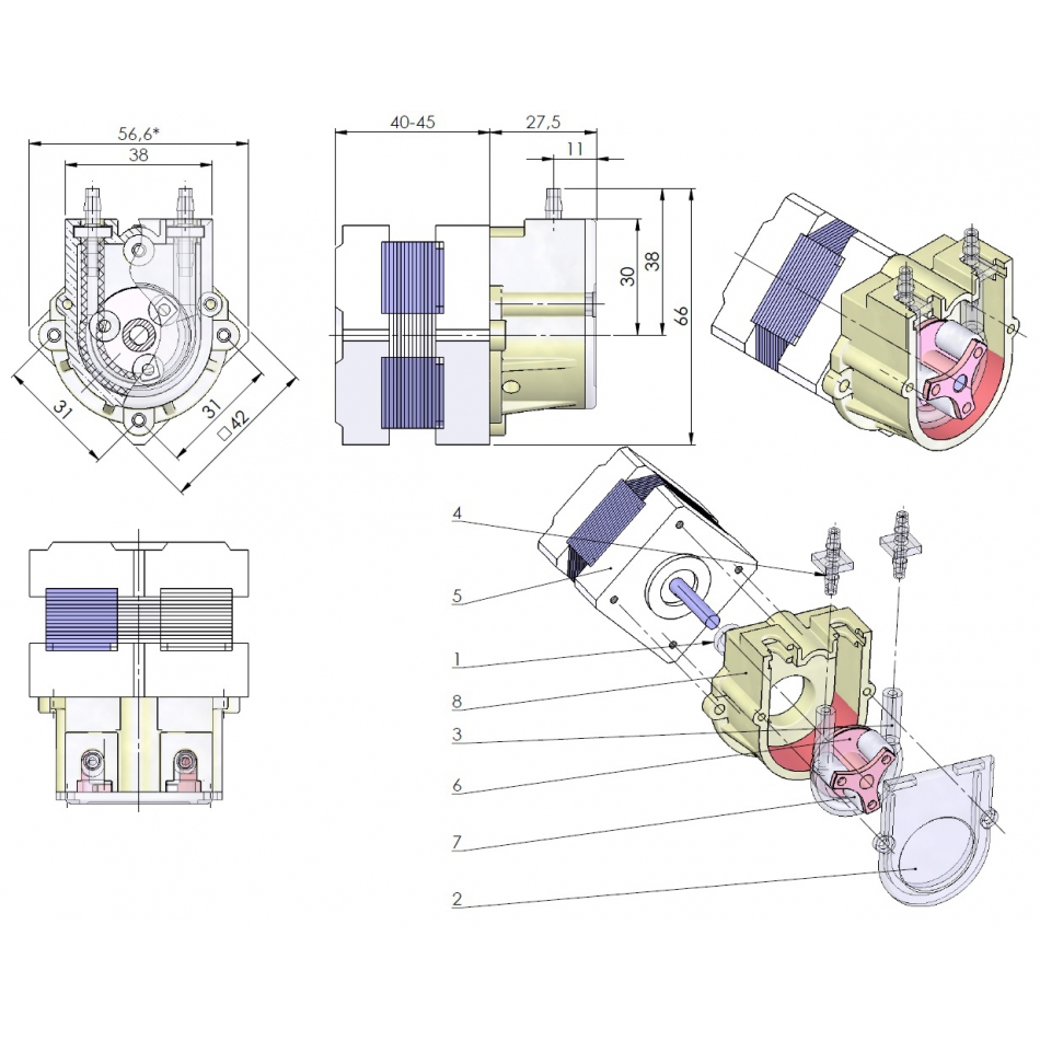 Deze kleine peristaltische pompjes zijn echt mooie artikelen. Het kleine PP60 model kan direct op een NEMA17 motor gemonteerd worden. De pompjes kunnen gebruikt worden voor het zeer precies doseren van vloeistoffen. Verder hebben ze een ISO9001/2000 kwalificatie en kunnen ze gebruikt worden voor voedingsmiddelen.