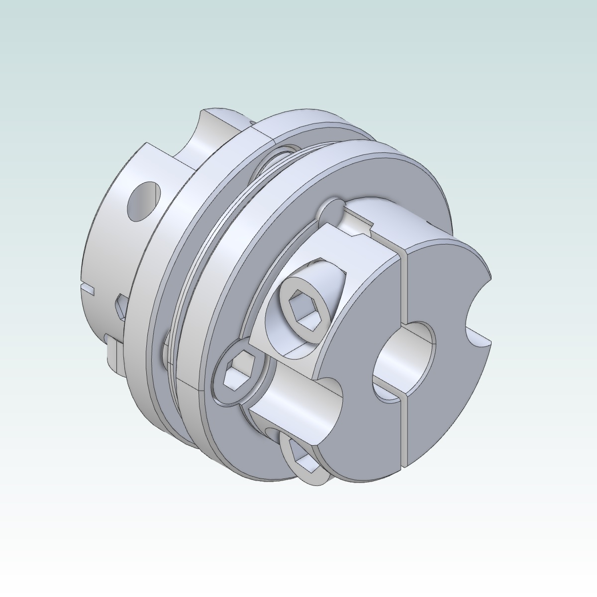 Wanneer men miniatuur kogelomloopspindels(8-10-12mm diameter) gebruikt, raden we aan om deze as-koppelingen te gebruiken. Gezien de kogelomloopspindels nagenoeg spelingsvrij zijn, is het van belang dat de askoppeling dat ook is, en dat is deze. Het nominale koppel is 2Nm en het maximale koppel 4Nm. In theorie is het dus mogelijk om deze koppeling op een 4Nm stappenmotor toe te passen. In de praktijk (door het formaat) gebruiken we deze motor alleen voor kleinere stappenmotoren (NEMA11 en NEMA17), of servomotoren 100W en 200W van Delta. Het is mogelijk om combinaties van verschillende asmaten te maken, bijvoorbeeld een stappenmotor met een as van 6.35mm verbinden met een kogelomloopspindel van 8mm. Bij dit type koppeling is het niet mogelijk om zelf de hubs te wisselen. Voor het afstellen van de rondloop is speciaal gereedschap nodig. Het is dus echt van groot belang om direct de juiste koppeling te kopen, met aan beide kanten de juiste boring.
