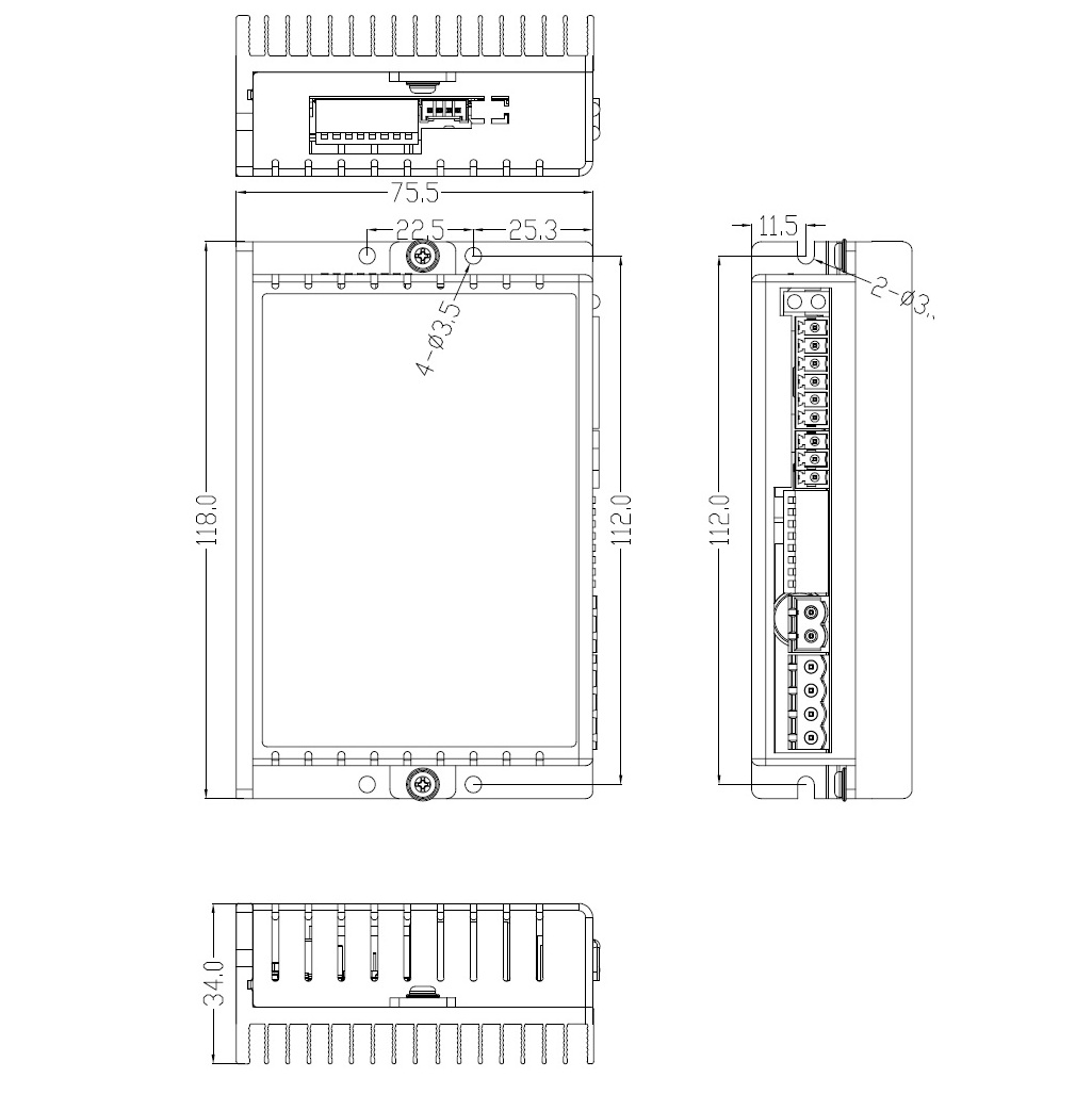 - Stuurspanning: 5VDC tot 24VDC. Het is niet meer nodig om dit met een dipswitch in te stellen, het werk altijd, driver detecteert het zelf