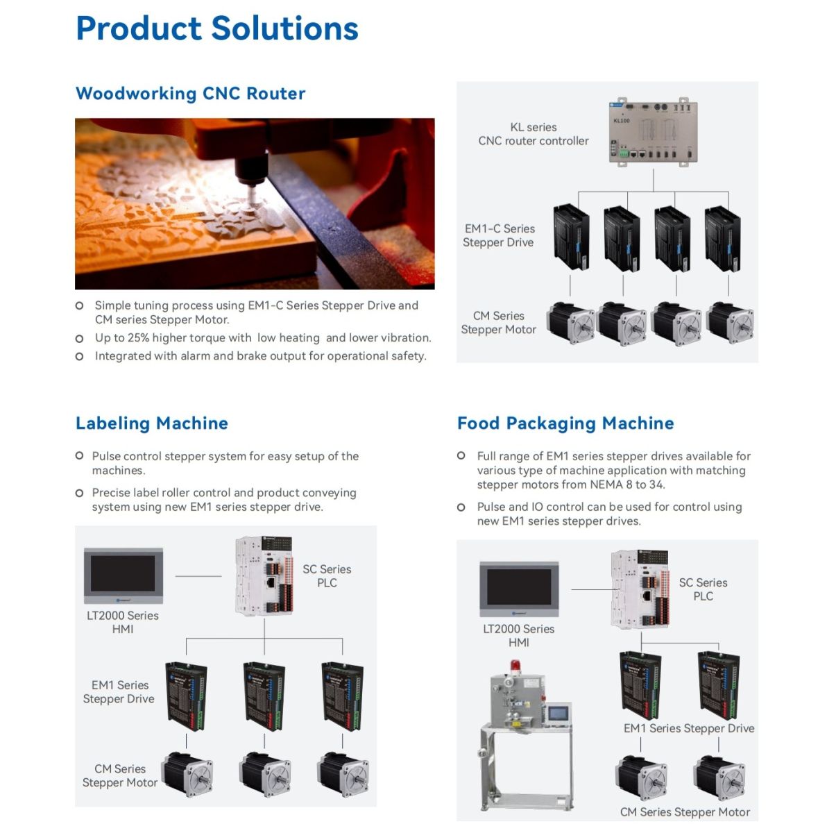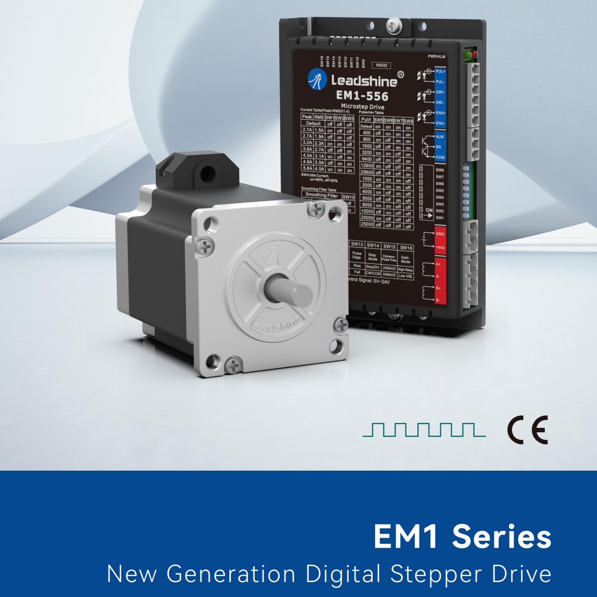 Aangezien chips en software continu worden verbeterd heeft Leadshine de nieuwe EM1 serie stappenmotor drivers ontwikkeld. Deze nieuwe drives behouden niet alleen de kenmerken van de EM-S en DM serie, zoals betrouwbaarheid, laag geluidsniveau, beperkte warmteontwikkeling en weinig vibratie, maar voegen ook nieuwe functies toe zoals alarm, rem, afvlakkingstijd, etc. Naast technische vernieuwingen heeft Leadshine ook gewerkt om de productie te optimaliseren, zodat de prijzen ook gunstiger zijn. Daardoor krijg je dus veel voor weinig bij deze drivers. De prijzen liggen significant lager dan bij de voorgaande series.