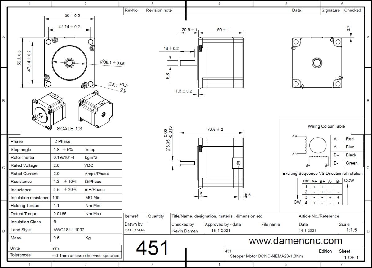 | 451-3 Stepper Motor DCNC-NEMA23-1.0Nm 2D Dimensions and Tech Specs |