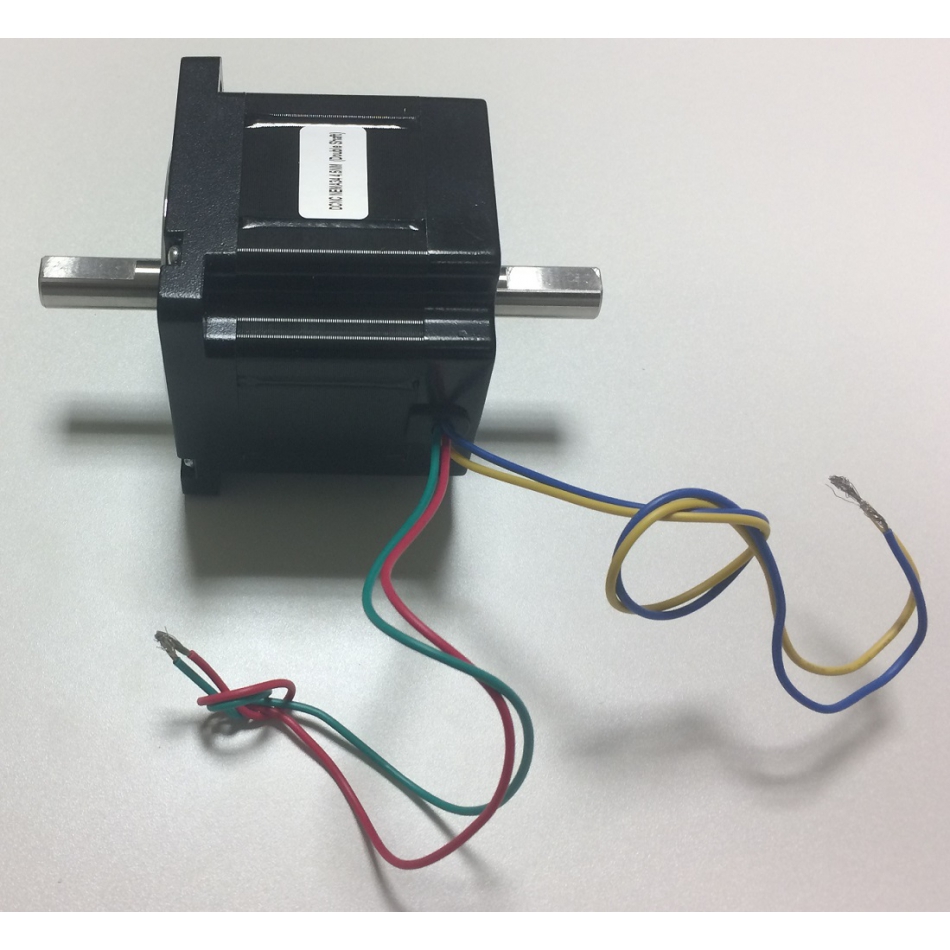 NEMA 34 4.5Nm stappenmotor, maar dan met een dubbele as. De dubbele as wordt vaak gebruikt om een mechanische rem op de Z-as van CNC-machines te monteren. Andere klanten gebruiken het om een handwiel op te monteren, zodat de CNC-machines ook handmatig kunnen worden afgesteld (is niet iets wat wij zouden adviseren, een elektronisch handwiel werkt beter). In principe wordt dit type motor gebruikt wanneer u iets aan de voor- en achterkant van de motor moet kunnen monteren. We adviseren om deze motor te gebruiken met een EM870S driver en minimaal 75VDC, je kunt nog meer prestaties krijgen door hem te gebruiken met de DM2282 driver.