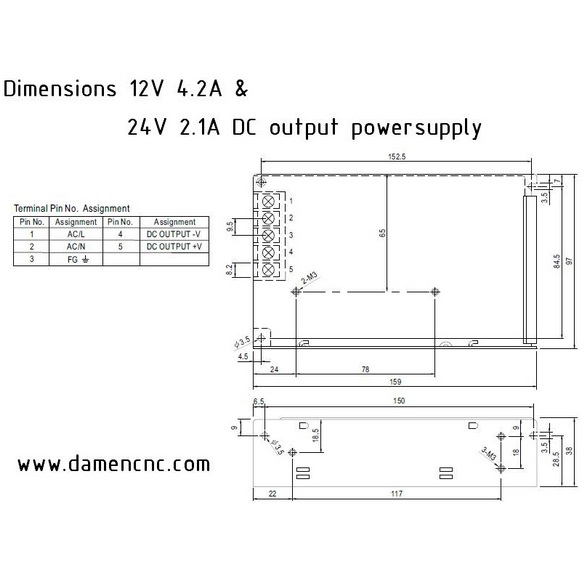 Deze kleinere voedingen gebruiken wij vaak voor power van sensoren en andere kleine actuators. Hij is niet echt bedoeld om te gebruiken met een stappenmotor. Op kleine NEMA-17 motoren kan het werken. Dezelfde voeding wordt gebruikt in onze RTR controllers om stroom te leveren aan de Inductieve proximity switches en ook aan de USBCNC CPU